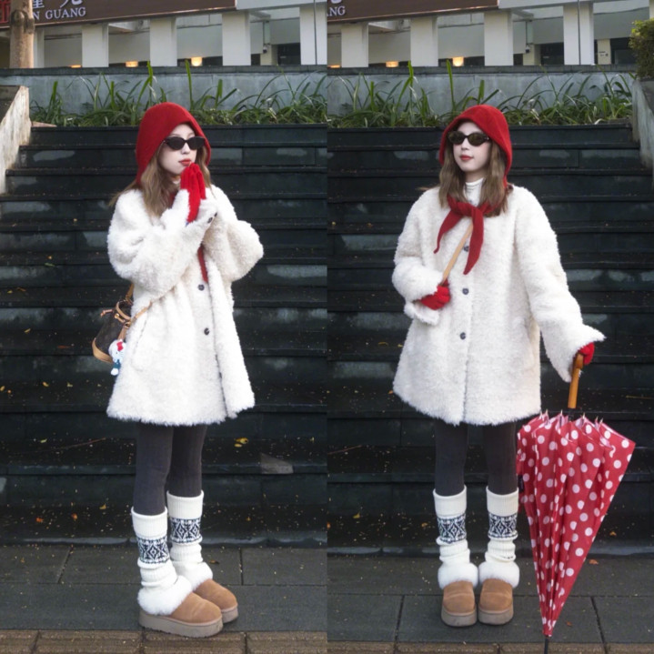 冬季穿搭遮肉显瘦很进攻,最好的搭配公式等于上半身遮肉下半身显瘦,比如这套白色羊羔毛中长款大衣搭配深灰色打底裤,白色长筒袜加握,就算是微胖小个子体格也能精真金不怕火独霸。