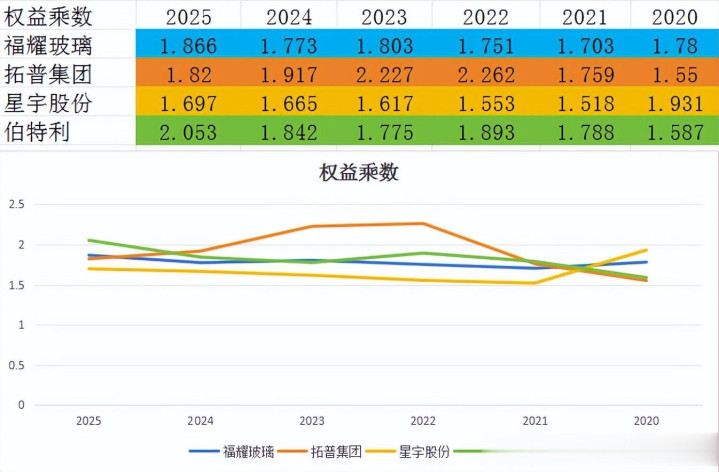 2025年,它们的财务杠杆名次为:伯特利>福耀玻璃>拓普集团>星宇股份。