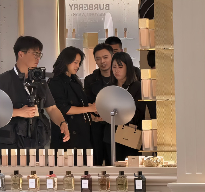 镜头前,汤唯时时与柜姐含笑互动攀谈着,时时立足脚步拿着小样谛视有计划,亲力亲为。