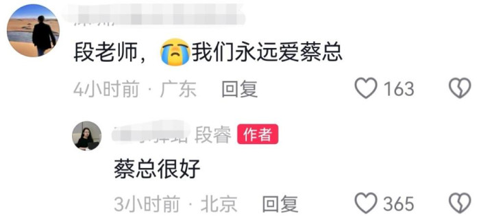 批驳区蓦的炸了,整个东谈主第一反映齐是蔡磊何如了。她很快回了三个字:蔡总很好。