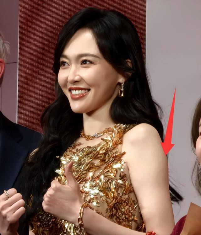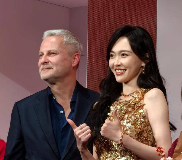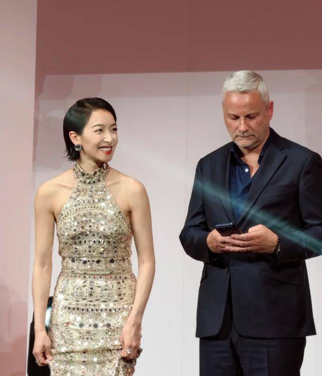 唐嫣穿的亦然一条金色挂脖裙,透着一种经典的虚耗感,颠倒合乎她的气质。