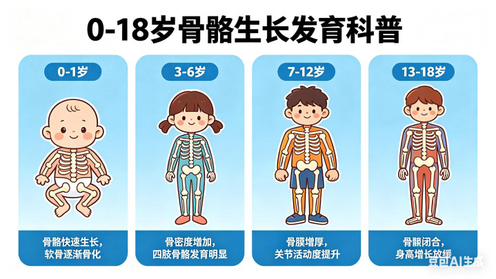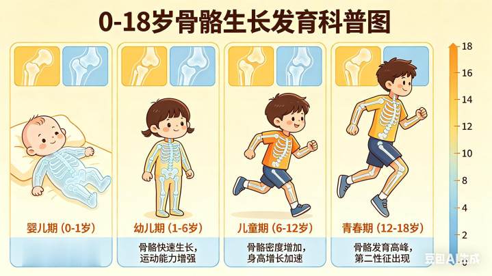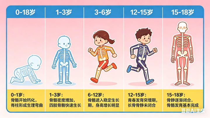 1. 婴幼儿期(0-3岁):这是东说念主生中骨骼滋长速率最快的阶段,是骨骼发育的基础奠基期,此时的养分与顾问,奏凯决定后续骨骼发育的基础底细。