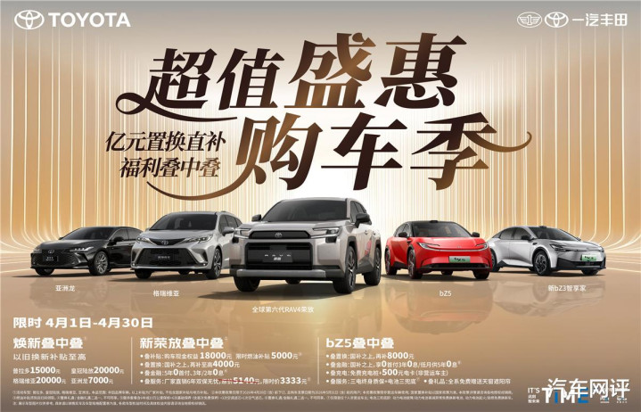不少家庭换车时最头疼旧车处治,此次一汽丰田成心把置换福利拉满,帮宇宙省去黄雀伺蝉。4月1日至4月30日历间,普拉多、王冠陆放、格瑞维亚、亚洲龙这几款热点车型,要是用本品牌旧车置换,最高能拿到20000元补贴,旧车变现更省心。而深受年青家庭嗜好的新荣放,福利更是诚心加倍,18000元现款补贴加上5000元限时燃油补贴,再疏通国补和最高4000元置换补贴,优惠满满,这笔钱用来带家东谈主踏春、买露营装备齐很合算。