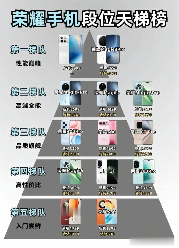 2026年4月荣耀手机段位排名榜已崇敬发布,该榜单依据市集发扬、用户口碑、性能参数及玄虚体验等多个维度进行科学评定,旨在为蚀本者提供一份了了直不雅的购机参考指南,本次排名共分为五个梯队,每个梯队均对应不同的产物定位与筹备东说念主群,从性能巅峰到初学尝鲜,障翳了不同预算和需求的用户群体,榜单内容严谨设施,数据信得过可靠,通盘机型均以官方发布信息为准,不波及任何第三方平台来往或价钱变动。
