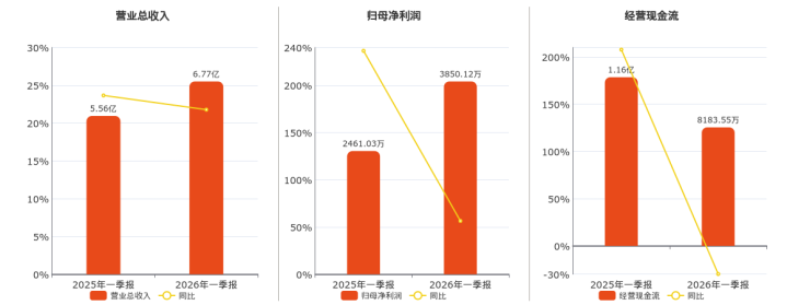 公司交易总收入为6.77亿元。归母净利润为3850.12万元。方向行径现款净流入为8183.55万元,较旧年同论说期方向行径现款净流入减少3463.22万元,同比拟旧年同时下跌29.74%。