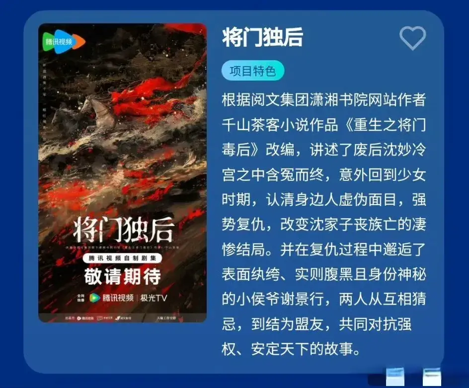 《将门独后》当作改编自热点演义《更生之将门毒后》的S+古装剧,评释将门嫡女沈妙更生复仇的故事。