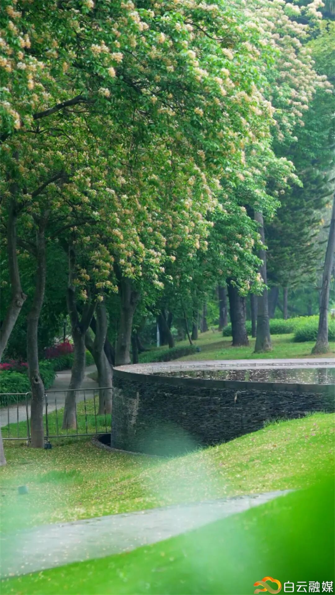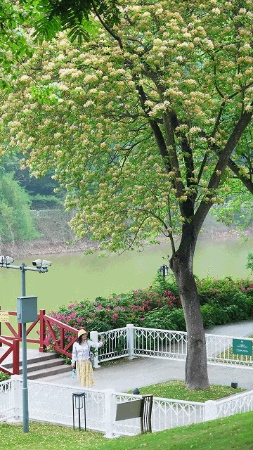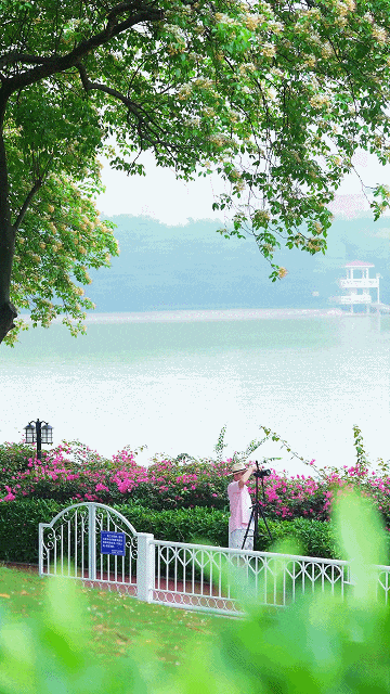 赏完花沿着湖畔散步