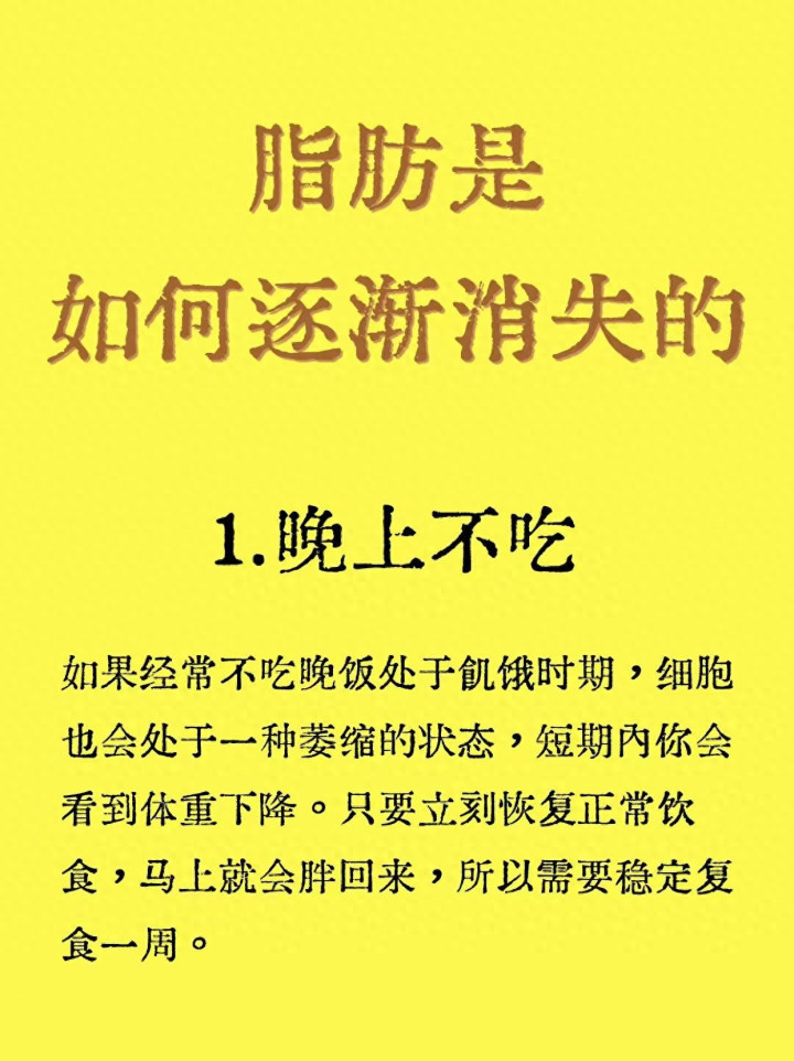 这是外行减肥最容易踩的坑:认为“晚上不吃,就能快速掉秤”,收尾饿到凌晨睡不着,第二天疯狠毒食,脂肪反而越囤越厚。