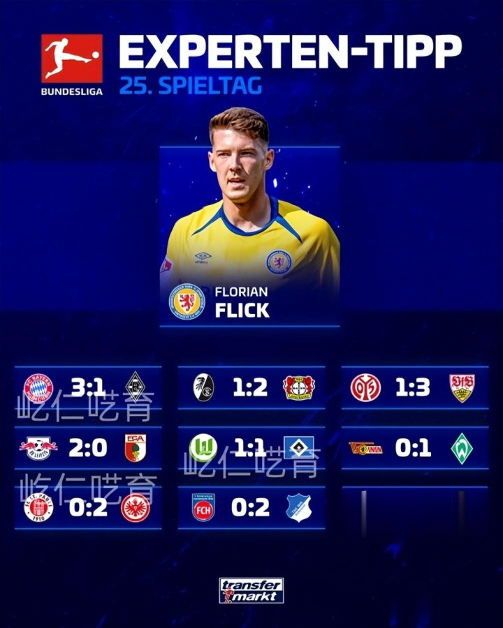 固然看上去这和来自于英超赛场的名宿估计差未几。但区别在于,英超比分估计由于皆是归拢东谈主所进行的,因此专科性相对较强。而对于德甲的估计,却在每个轮次的东谈主员皆是不同的。